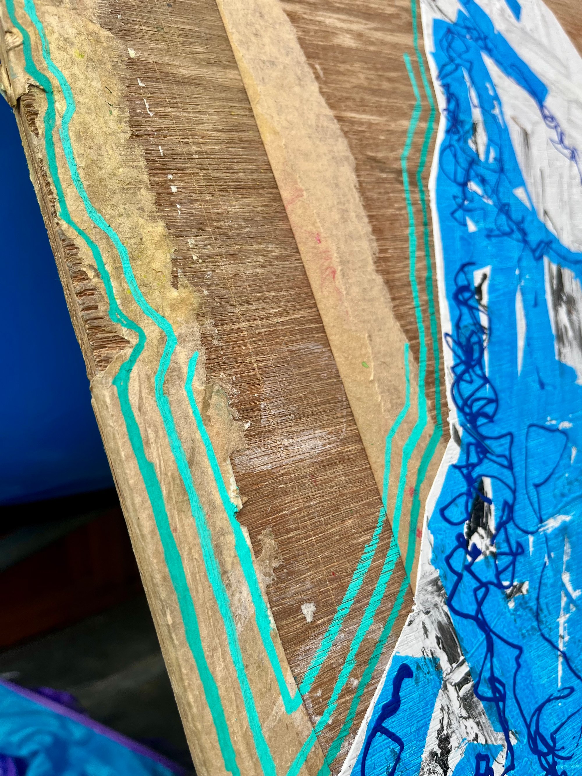 I found the plywood in the back of a classroom cupboard, it’s been used to stretch paper for years, it was going to be binned so I saved it.