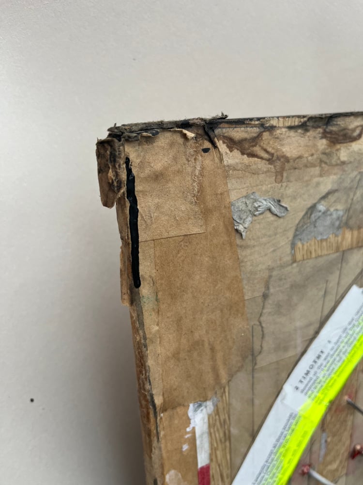 Encircling the figure is the “halo”: a ring constructed from torn pages of your old youth Bible, washed with luminous neon yellow and pierced with nails. The pages wrap around the head like a fragile scripture-crown, both protective and wounding. Each protruding nail feels like a mark of pressure, expectation, or injury—turning the traditional halo of holiness into something tactile, physical, and almost violent. The mix of sacred text, construction materials, and bright illumination blurs the line between reverence and rebellion.